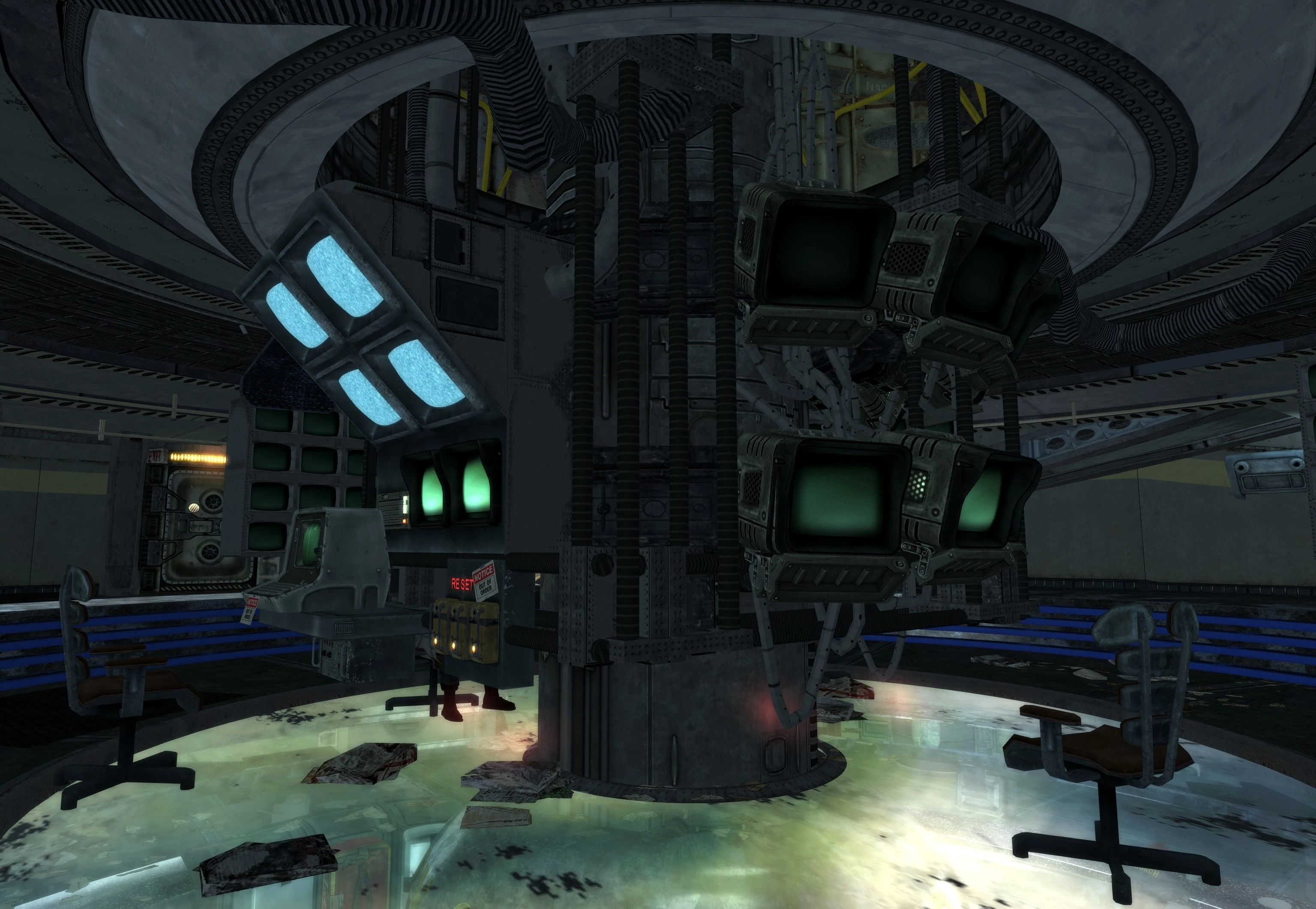 The remaining two tiers can be repaired by going out to the Lower Cistern. The access hatch is located in the Utilities area of the atrium; if she is present in the computer lab, Kira Mann can be asked to lead the player character to the hatch. Once inside, hack the two Average level terminals (50 Science required). Choose the options available in both terminals and return to Maria and repair tier three (35 Science required). Note that if the terminals become locked out, there is no way to finish the quest other than reloading a save or using console commands.